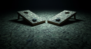 promotional cornhole set for marketing with dollar bills