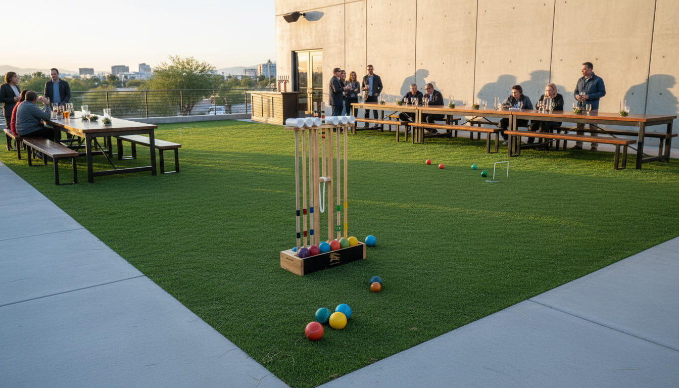 A refined lawn game that suits elevated hospitality areas and resort activations. Croquet encourages multi-turn play and comfortable social interaction, making it useful for VIP tents and corporate retreats. Wooden mallets and wicket signage provide tasteful branding opportunities without compromising the game’s classic aesthetic.