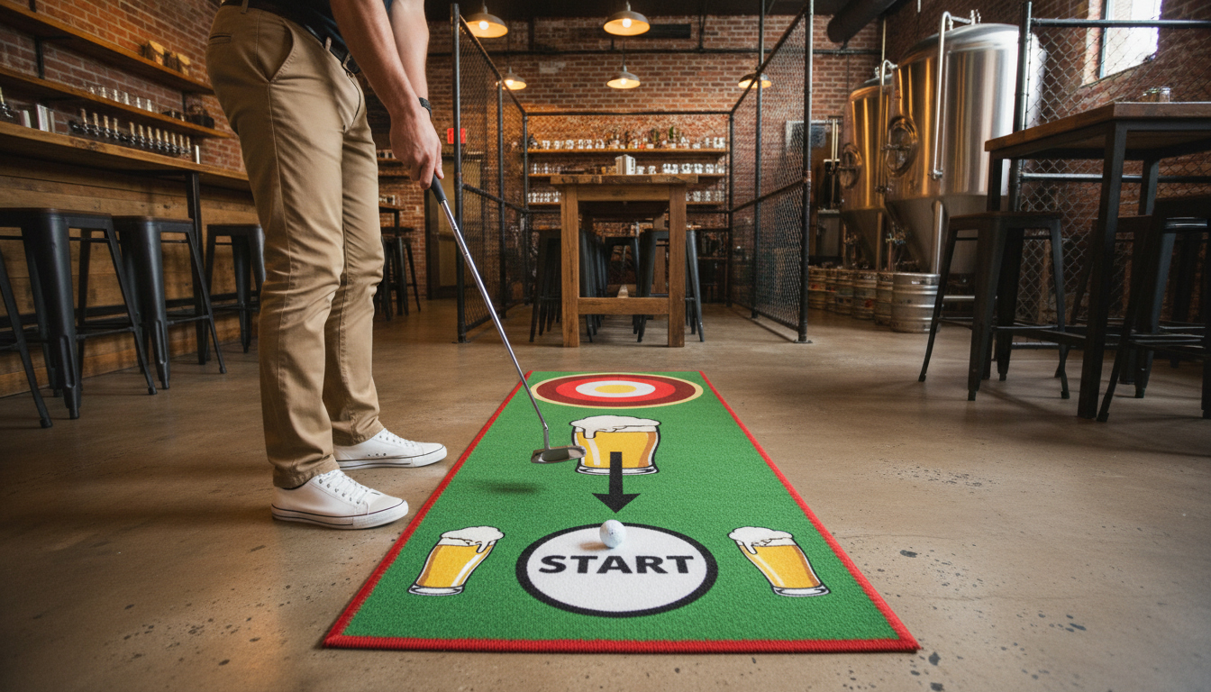 Indoor putting greens and mini-golf holes deliver relaxed, goal-oriented play that works well inside activation tents, lobbies, and hospitality suites. They invite measured skill attempts and prize-based activations, which are excellent for giveaways and lead capture. The green surface and hazard areas can be printed with subtle or full-bleed branding depending on your goals.