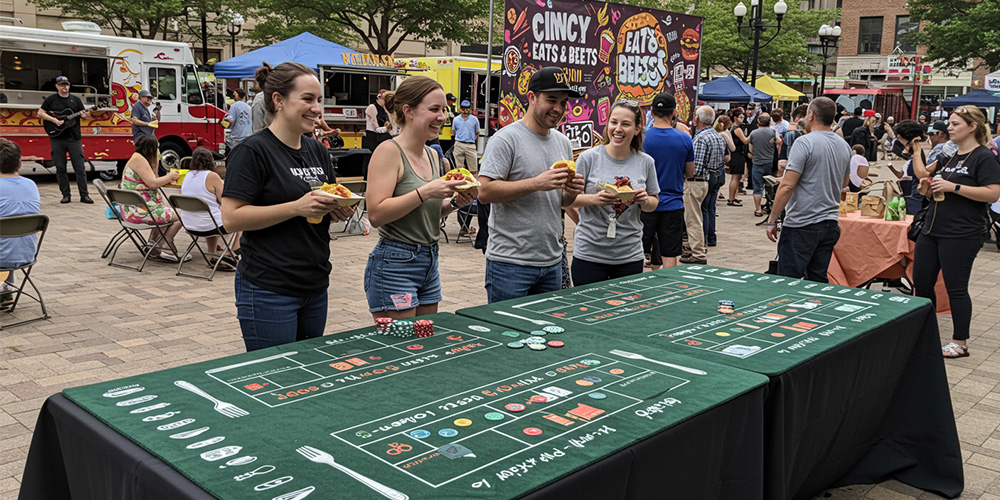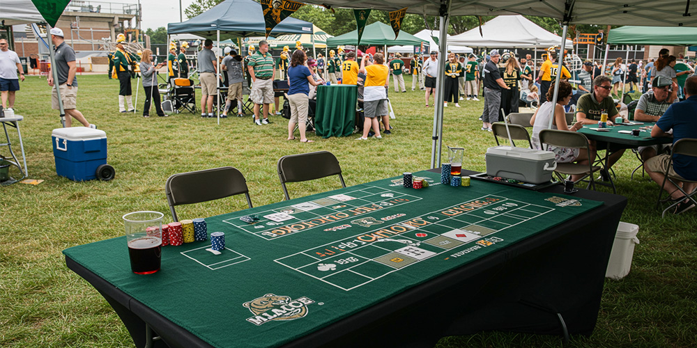 Get ready for your next casino night with the Blackjack or Craps mat and bring the excitement of the casino to your event. With customizable designs and professional quality materials, these mats are the ultimate addition to any casino game setup.