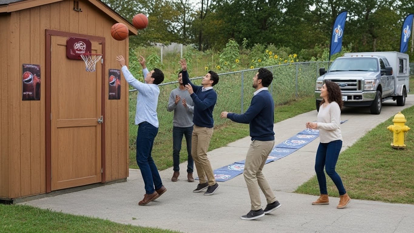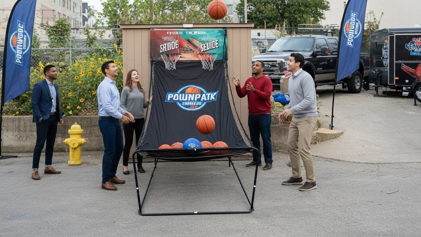 Set up a door-mounted hoop and run a quick-fire contest. Participants shoot for 15 seconds, tracking makes on a leaderboard. Every entry captures attention and reinforces your brand. This tactic mirrors popular promotional trade show games, but in a portable, budget-friendly format.