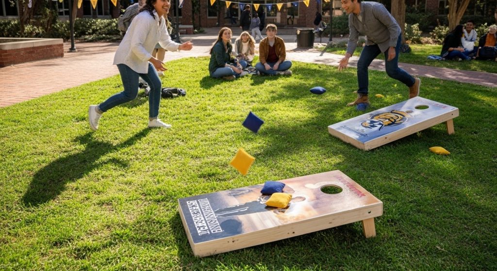 • Branded Cornhole Boards: Cornhole is a staple for interactive events. Customized boards and bags create an immediate visual connection with your brand. Consider hosting a cornhole tournament fundraiser to maximize engagement and charitable involvement.