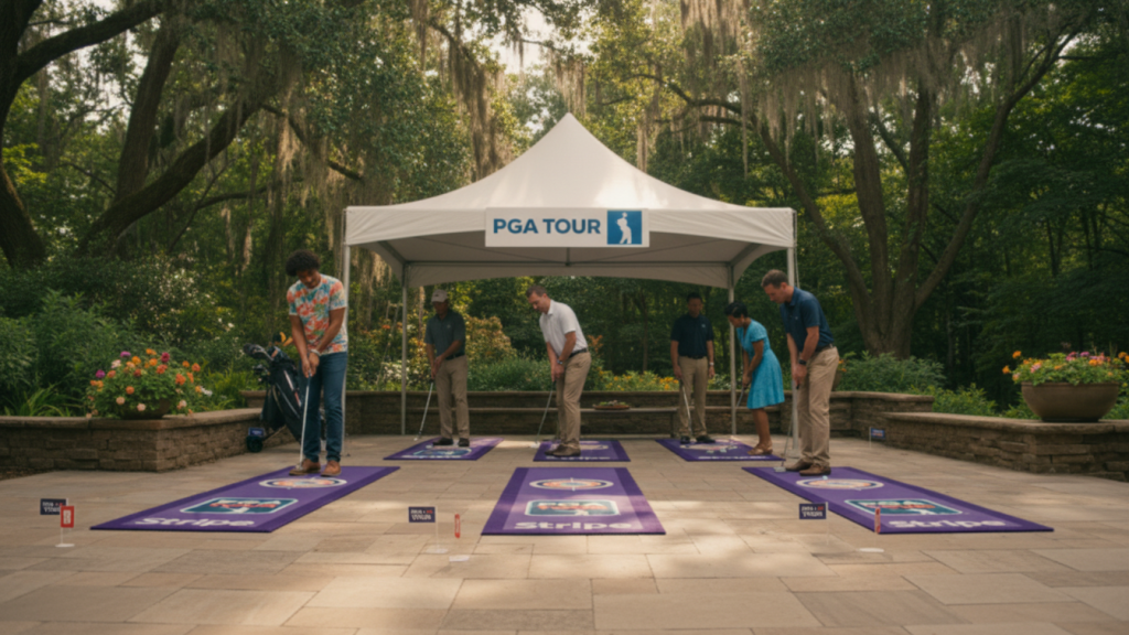 • Branded Mini Golf / Putt-Putt: Portable and eye-catching, a branded putting green is perfect for tradeshow booths. Attendees can test their skills while your logo remains top-of-mind.