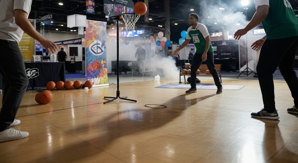 - Basketball Hoop: Classic and universally engaging. Brand hoops and balls with your logo. Use competitions, points, or instant prizes to maintain excitement. Encourage attendees to post shots or wins to social media to amplify reach.