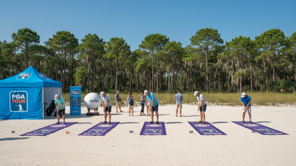 - Prize Putt Mini Golf: Ideal for booth activations or lounge areas. Customize holes with company logos, colors, or promotional messaging. Encourage attendees to complete challenges to win prizes, driving foot traffic and interaction. Pair with a leaderboard to encourage repeat attempts.