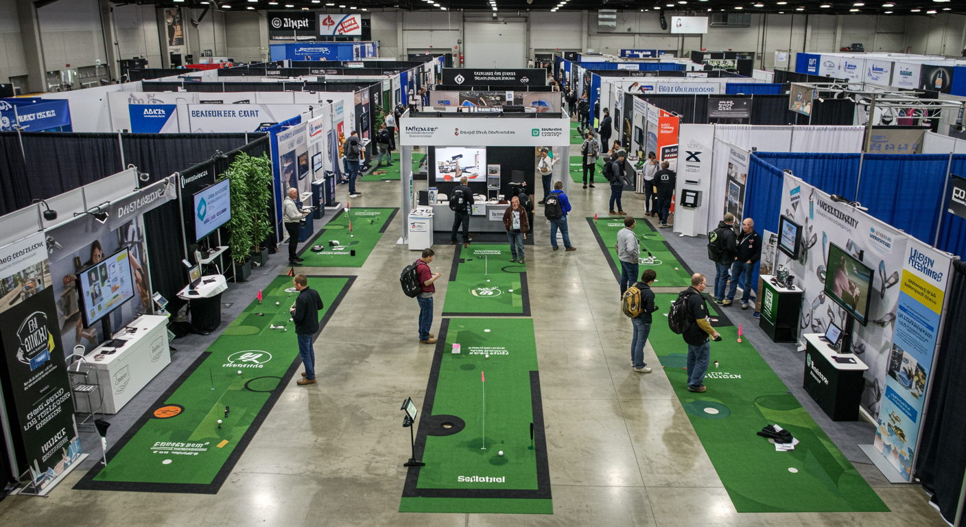- Trade shows – Boost booth dwell time and scan badges with branded putting mats