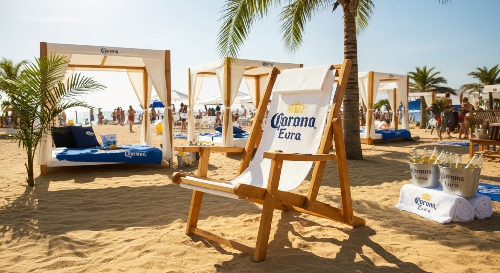 Promotional imprinted chairs turn downtime into brand engagement. Offer seating for event-goers with subtle logo placement. See more about promotional beach chairs as an activation tool.