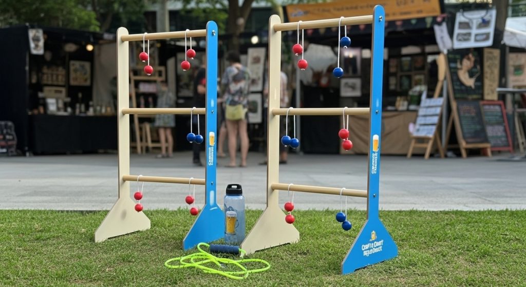 Loop Darts offers skill-based excitement that’s easy to brand. Players aim for loops, and each successful hit reinforces a positive interaction with your logo. This game works well for interactive promotional items and is compact enough for festival setups.