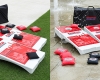 - Regulation 24″ x 48″ **plastic all-weather cornhole boards** with printed graphics