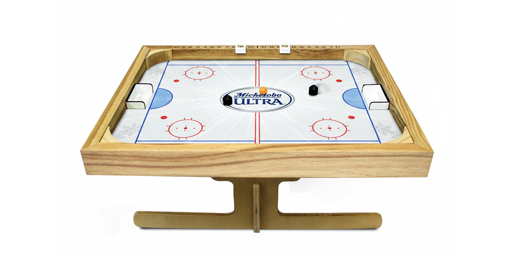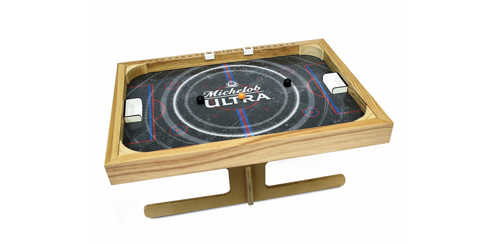 | Mag-Ball blends hand-eye coordination with fast-paced, competitive play. Each player uses a magnetic wand beneath the surface to control their corresponding kicker on top. Aim, strike, and score through recessed goals on either end of the board. A built-in side rail tracks points up to 10 for each side. Constructed from natural wood and measuring approx. 16.75”L x 12.5”W, this compact branded soccer-style game is ideal for breakrooms, client engagement, and casual lounges. Designed for promotional use and brand engagement—not marketed toward children. |