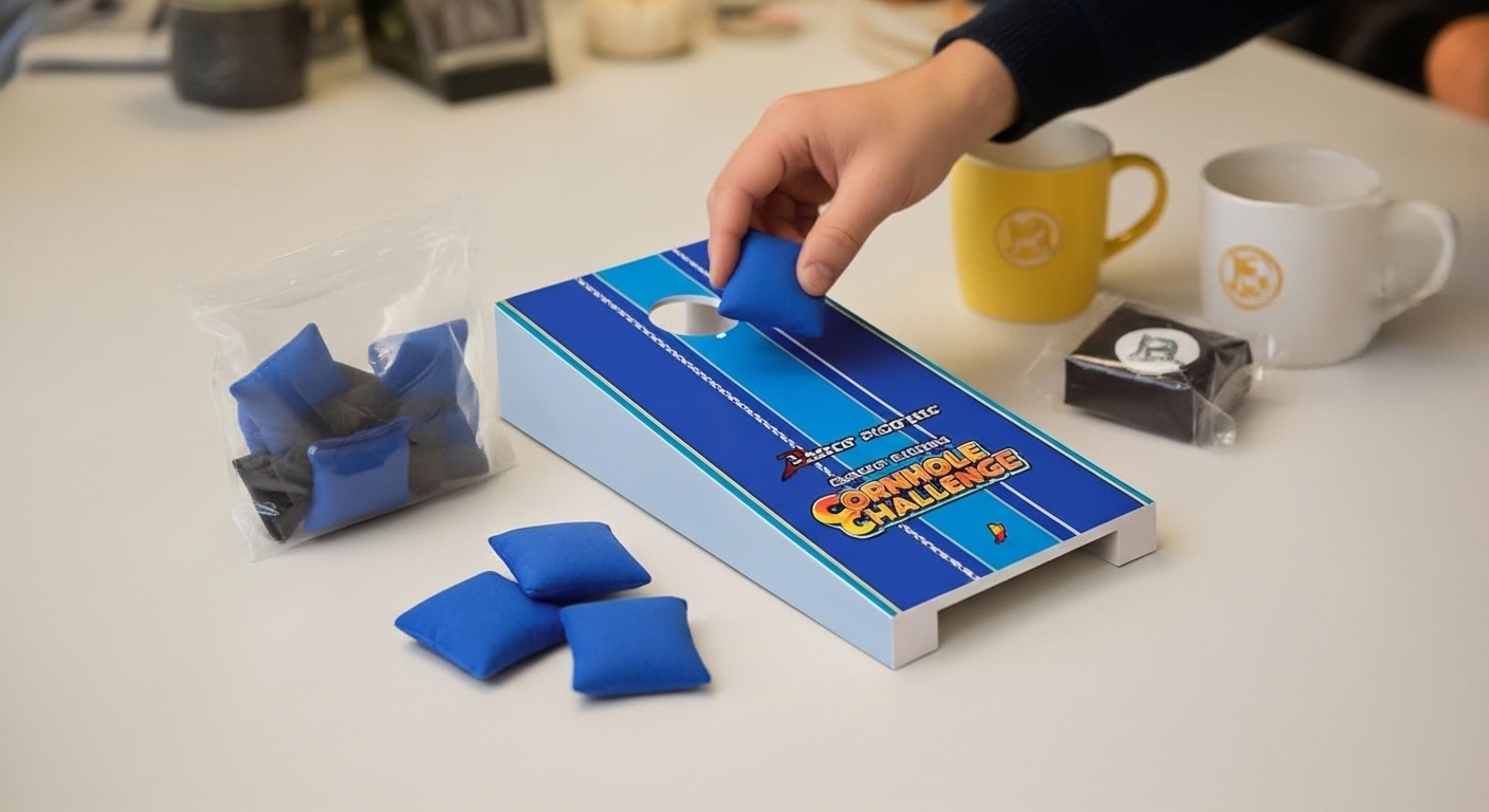 Traditional giveaways—pens, mugs, and t-shirts—often get lost in the shuffle. But interactive, branded games like mini cornhole sets or door-mounted basketball hoops create engagement and invite participants to interact with your brand. A marketing professional can purchase these items not just for novelty but to strategically drive awareness, social media interaction, and even repeat engagement at events.