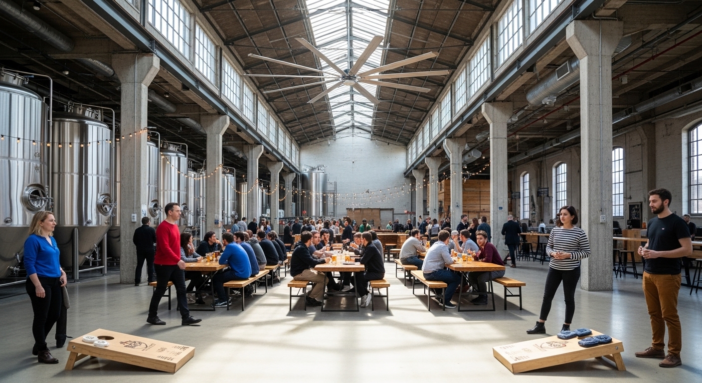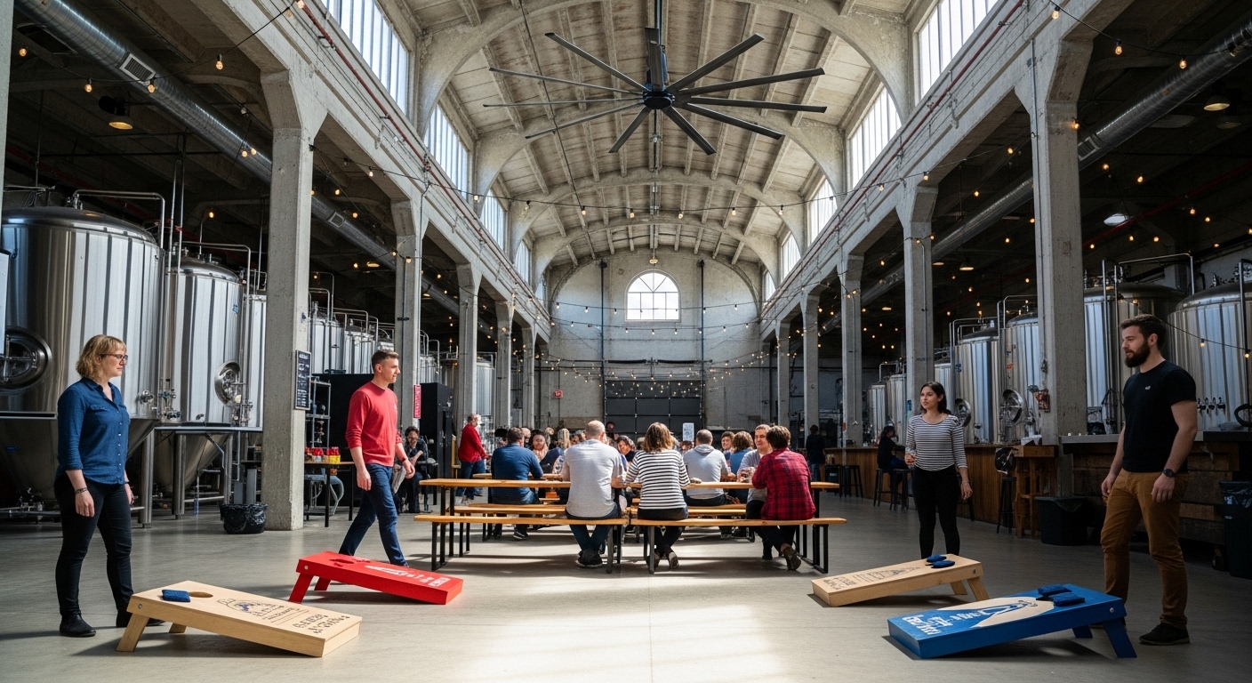 - Venue Integration: Cornhole in the taproom layout, directly under skylights for ambiance.