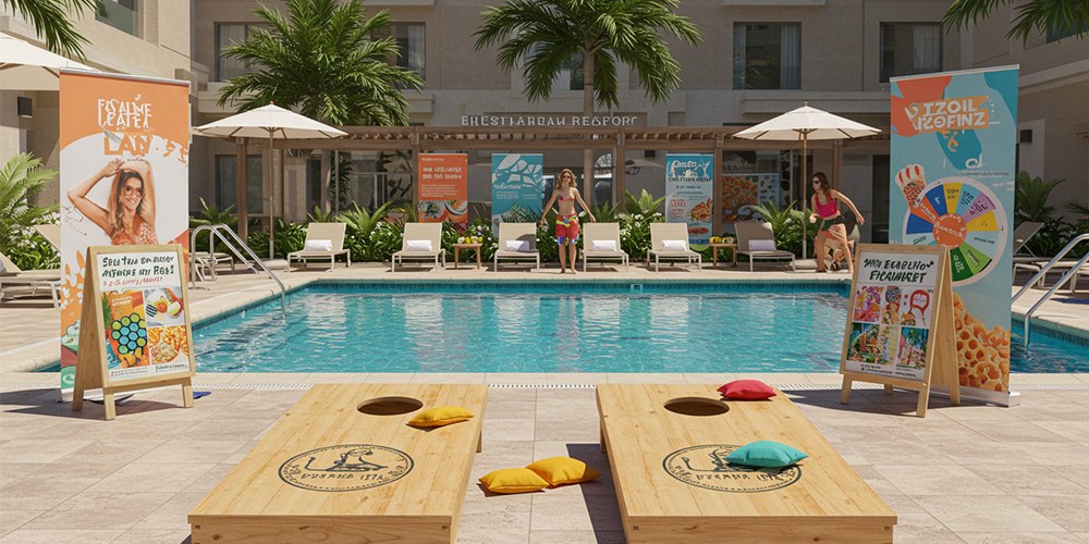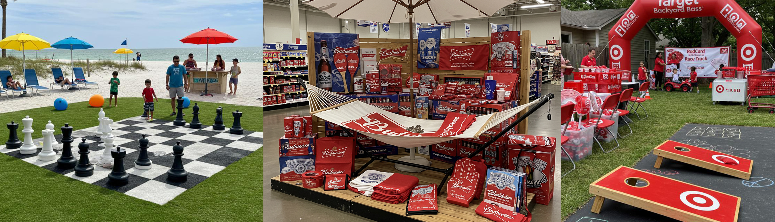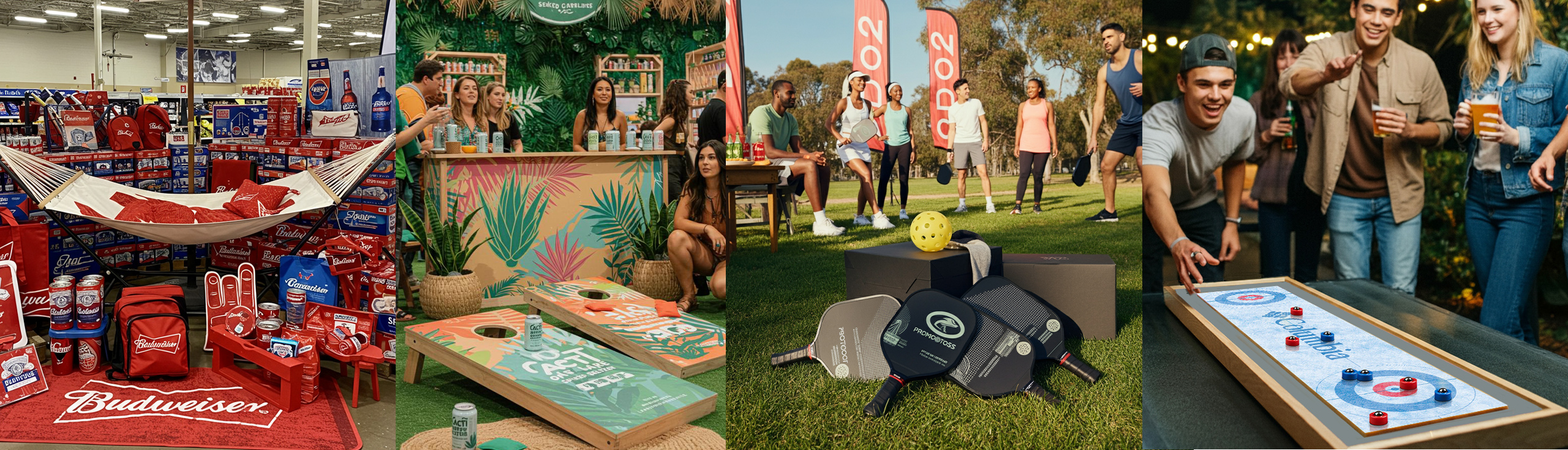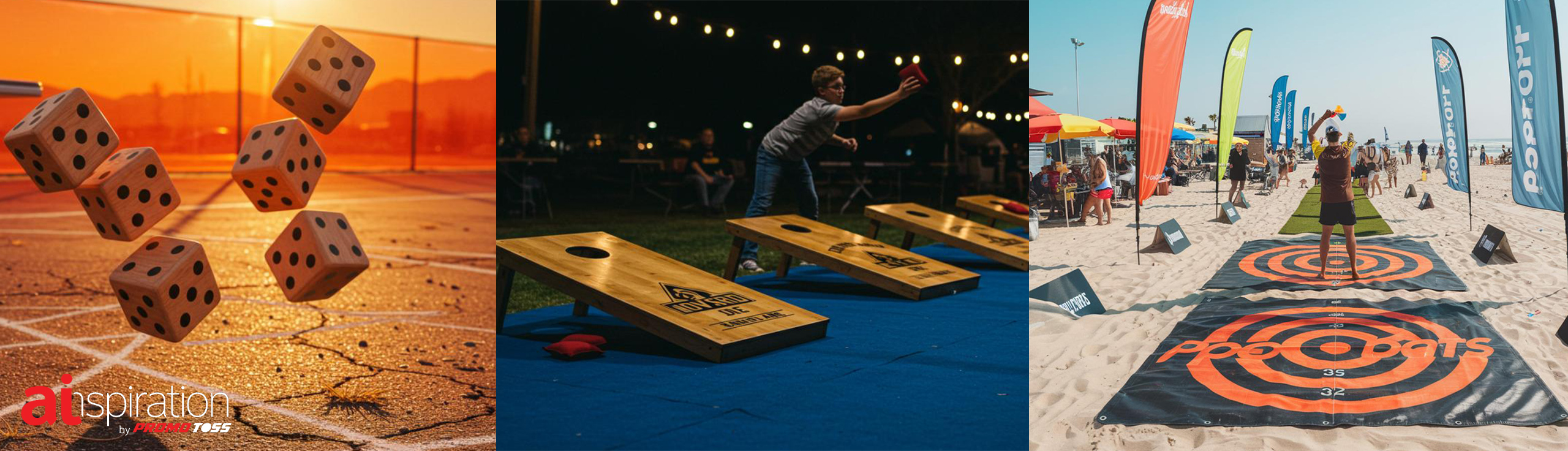 | Lawn Games | Festivals, Public Activations | Multiple pieces, full-color logo | custom lawn games, fun promotional games |