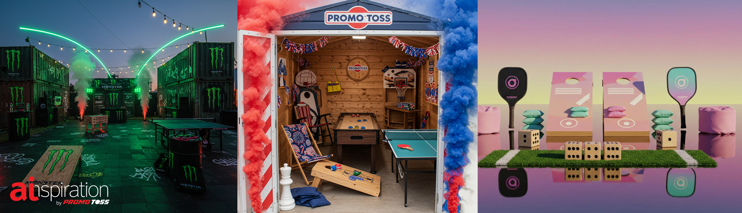 Promotoss specializes in custom branded games, custom adirondack chairs, branded cornhole, and company logo printed beach chairs, offering fully customizable solutions for brands seeking high-impact promotional items.